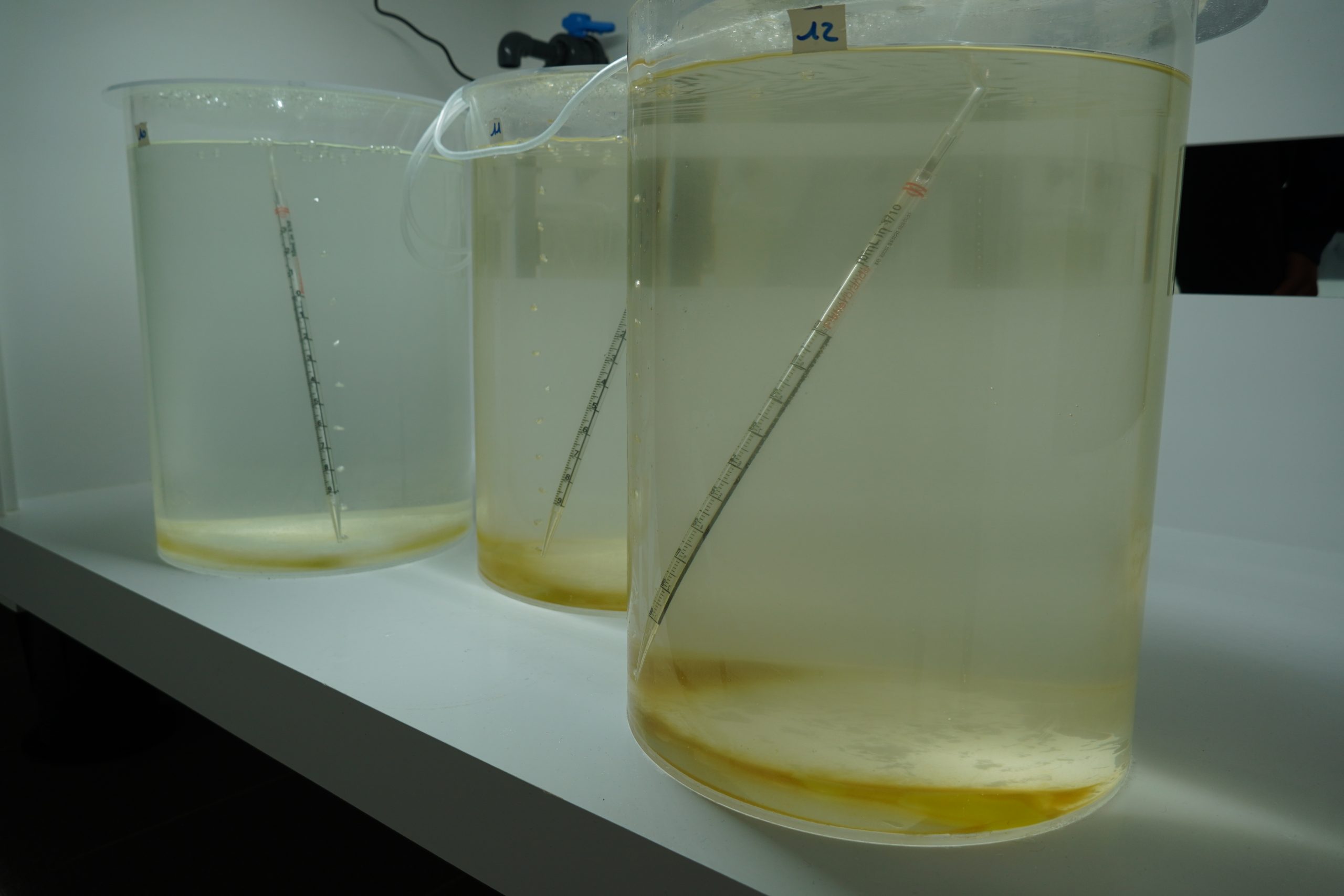 De retour au laboratoire, le phytoplancton est dilué pour obtenir des populations très diversifiées et d’autres beaucoup moins. Ces groupes réalisés sont ensuite mis en culture pour observer leur développement.