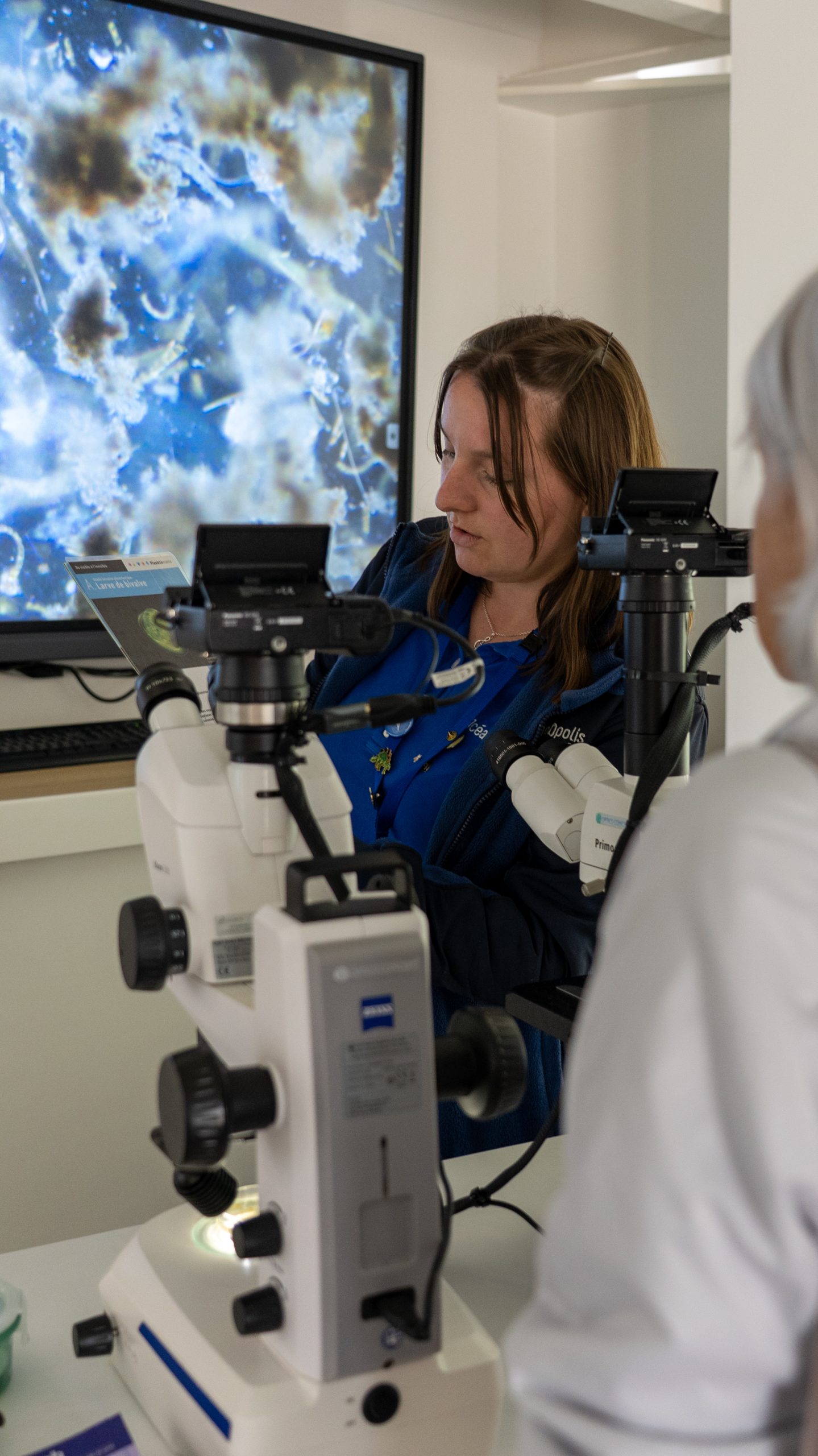 Nous avons amassé une belle quantité d’échantillons ! Aux moments clés de l’expérience, c’est à dire au début, au pic du bloom puis durant sa décroissance, nous avons prélevé de l’eau pour dénombrer et identifier sous le microscope chaque espèce présente. C’est assez fastidieux mais ce sera vraiment le résultat le plus important de cette expérience.